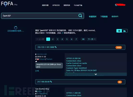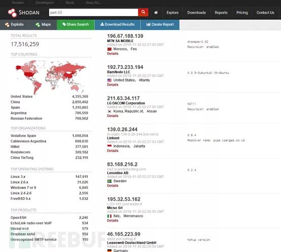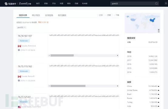 由于DNS协议 运行在 UDP 协议 之上,使用端口号53,所以可以使用一些特殊的搜索引擎来快速获取目标。