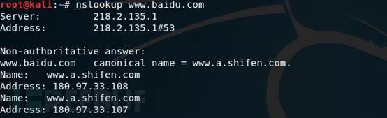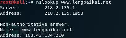 第二行Address是: 服务器的ip地址 --218.2.135.1#53