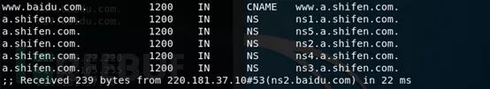 看到上面的情况,问题就来了,按照一般的逻辑,当dns请求到别名的时候,查询会终止,而是重新发起查询别名的请求,所以此处应该返回的只是www.a.shifen.com。但是为什么返回a.shifen.com的这个域的NS呢?