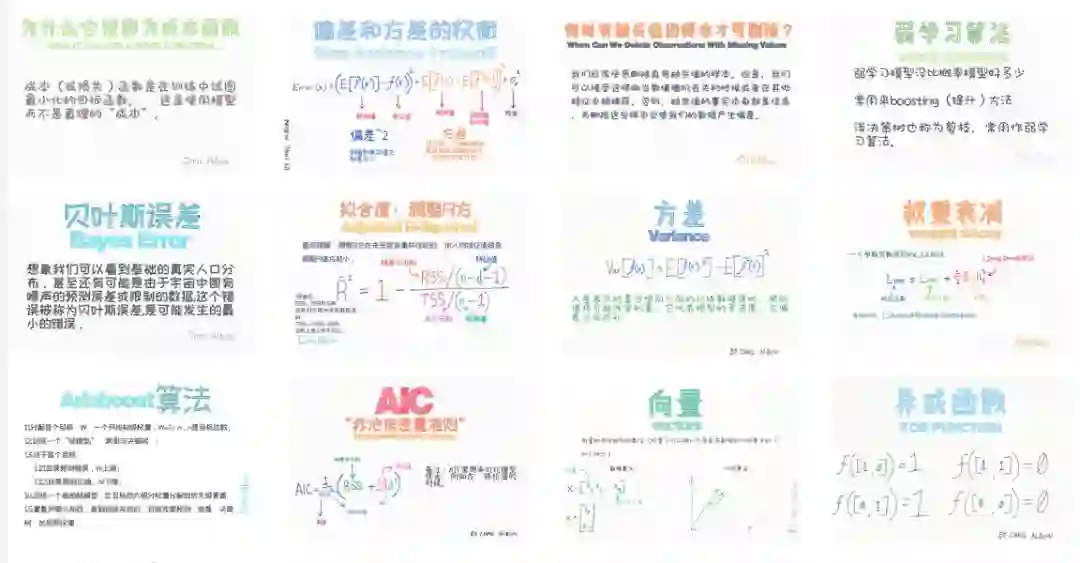 入坑数据科学和人工智能的同学都知道,机器学习是一个集合了计算机、统计学和数学知识的交叉领域,除了日常练习,也需要很多枯燥的记忆和理解。单纯读书不容易串联概念,又容易忘记。