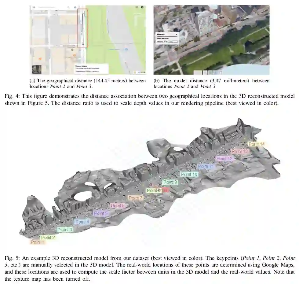 本文研究了远距离的室外城市环境中进行单目深度估计的问题。深度传感器,或传统的深度估计算法(无论双目还是单目)预测的深度范围都限制在室外100米以及室内10米的范围内。也正是由于传感器的限制,使得数据集中缺少远距离的真值,在某种程度上导致了使用基于学习的室外单目方法先天存在缺陷。为了克服这个缺陷,作者首先提出了一种新颖的方法来生成远距离的模拟深度真值数据。作者利用了谷歌地球图像来重建不同城市的大范围且具有合适比例的三维模型。得到的模型库和对应的RGB图像以及远距离的深度渲染一起用作深度估计的训练数据。