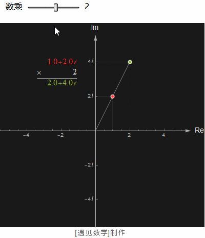 复数也可以有数乘运算, 就是对模的放大或缩小了: