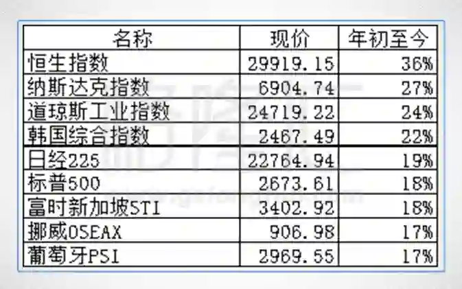 除去上面5个下跌的指数,其他国家指数均是上涨,也说明了今年可以说是个全球的牛市,本质反映了全球经济的回暖。