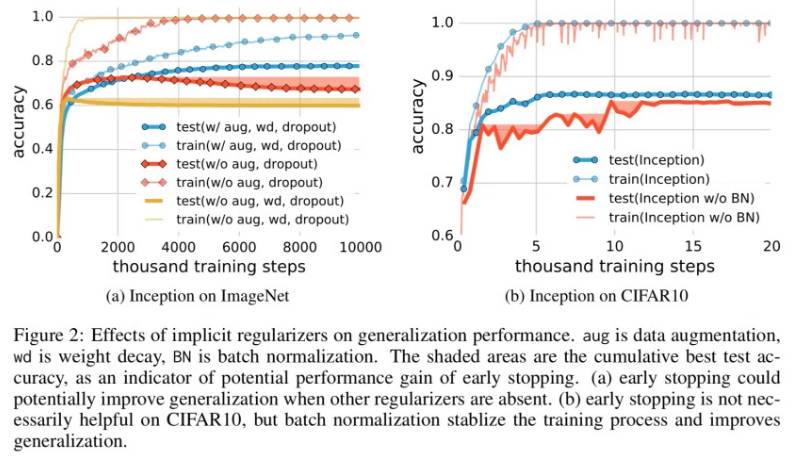 显性正则化似乎更多的是一个调整参数,有助于提高泛化能力,但是其缺失也并不意味着泛化误差。当然并非所有能够拟合训练数据的模型都能很好地泛化。本文分析中的有趣一面是,我们仅仅通过使用梯度下降过程就获得了一定量的正则化: