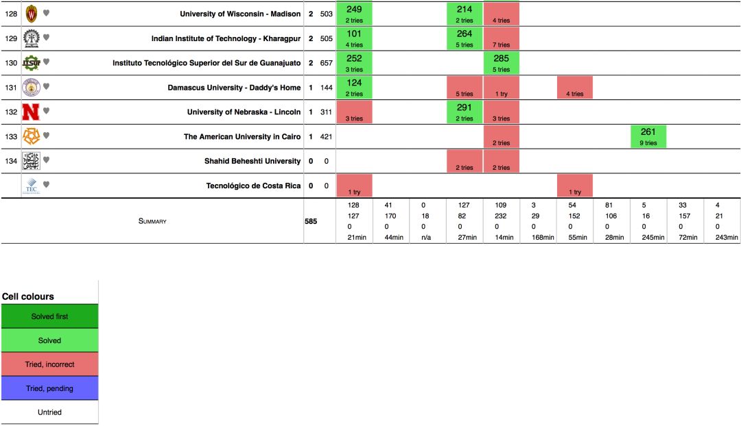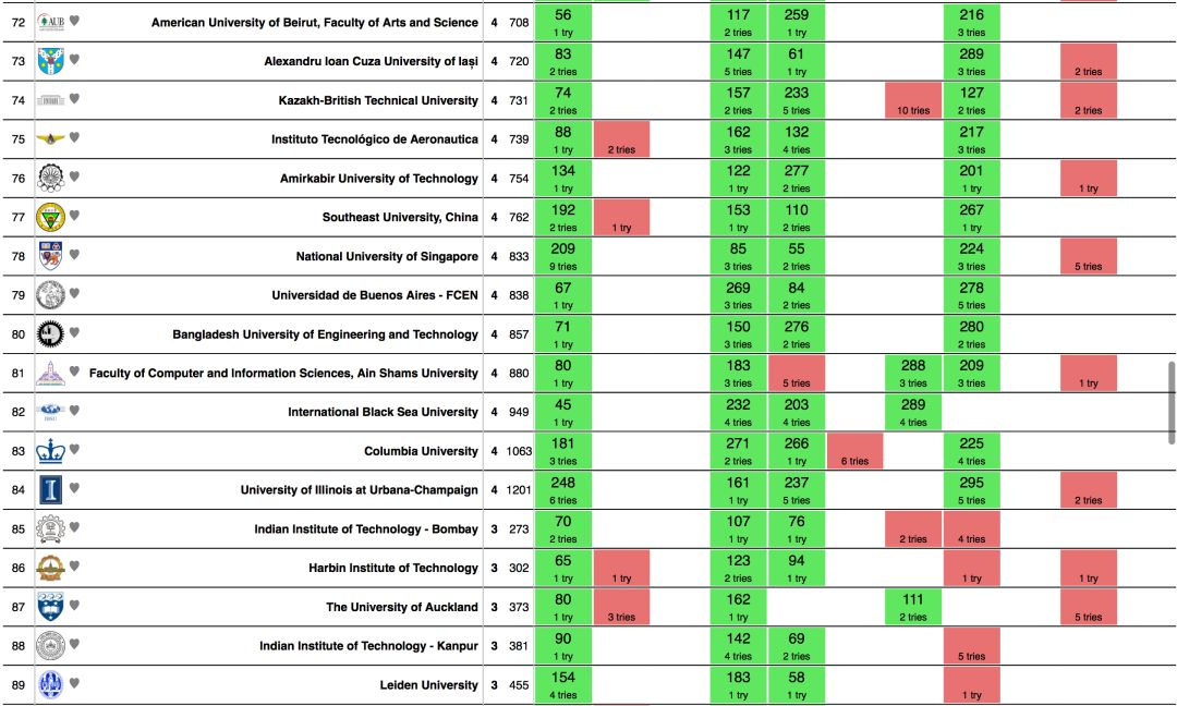 | 5 | 台湾国立大学 | 8个 | 1179秒 |