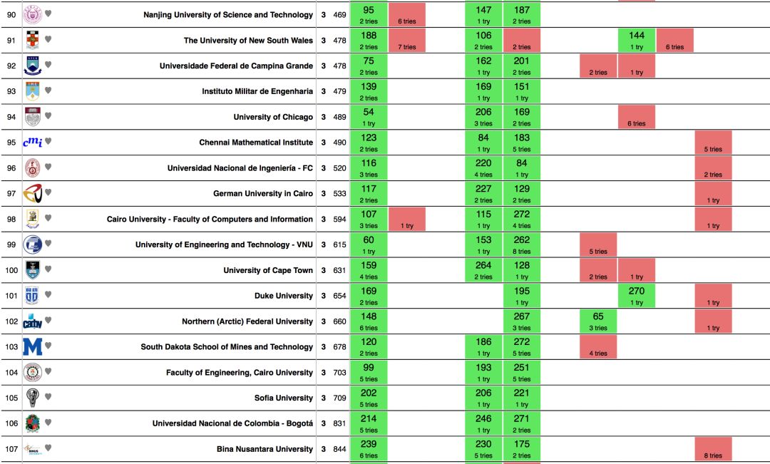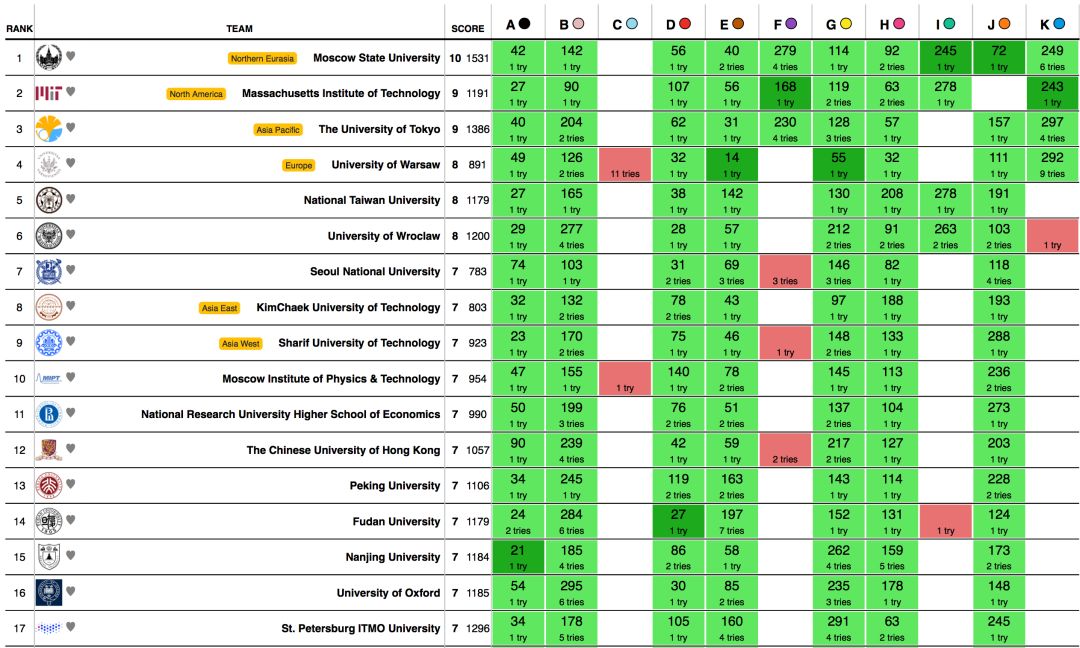 | 1 | 莫斯科国立大学 | 10个 | 1531秒 |