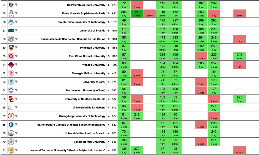 | 10 | 莫斯科物理科技学院 | 7个 | 954秒 |