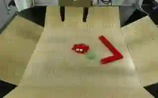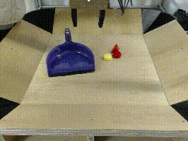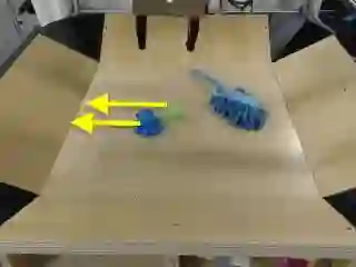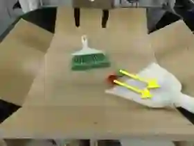 新任务是通过用户提供的物体移动关键点位置来指定的。例如,我们想要机器人把垃圾扫进簸箕,就可以选择垃圾的中心点和垃圾在簸箕上的最终位置来确定任务(见下图)。用这种方式指定任务不会告诉机器人如何使用某工具,甚至不会告诉它在这个场景下有哪种工具可以使用,机器人必须在其动作规划过程中自行确定。