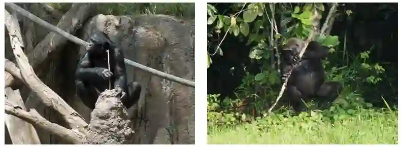 动物学习使用工具的技能大多来自观察学习和实践。例如通过观察,黑猩猩学会了用树枝“捕捉”昆虫,卷尾猴会用棍子将食物扫到身边。虽然我们不知道它们是否只是“机械模仿”,但我们相信这种使用工具的能力代表着一种更高水平的智力。
