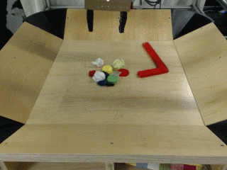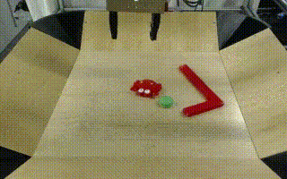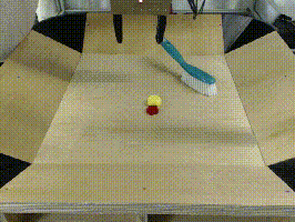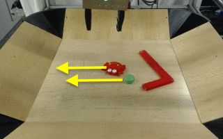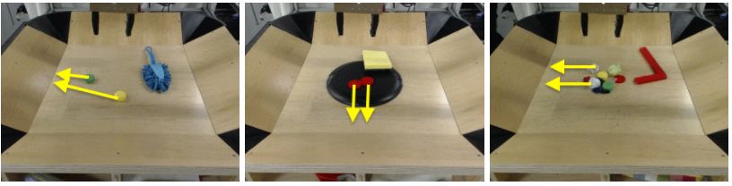 执行这种复杂的多对象操作任务(例如涉及工具使用的任务)的前提是理解物体间的物理因果关系,也就是要能够预测一个物体如何与另一个物体相互作用的。我们在之前的视觉模型强化学习的研究中探究过机器人在没有监测的情况下怎样利用因果视觉预测模型与周围环境互动。学习这样的模型之后,机器人可以完成各种简单的任务,包括折叠衣物和摆放物体。但是,如果我们考虑有更多工具的情况,例如用扫帚将污垢扫入簸箕,这种学习模型是不够的。