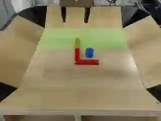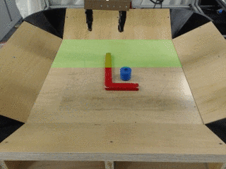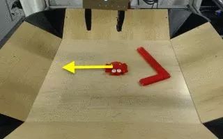 在下面的示例中,机器人只能在绿色阴影区域内移动,并且需要将蓝色圆柱体向自己方向拉。这个示例的关键是,机器人学会如何使用L形钩来完成任务: