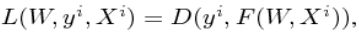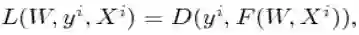 b) 损失函数(loss function):表示预测值与实际值(标签)之间的距离或者差异,函数D(y,f),表示某种评估实际值y与预测值f间的差异的方式。
