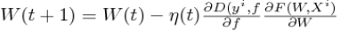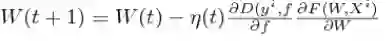 d) 更新规则(update rule):该过程是将上面计算的每个权重值上的误差用来更新,以得到新的、更为精确的权重值。上式中η(t)是学习率。