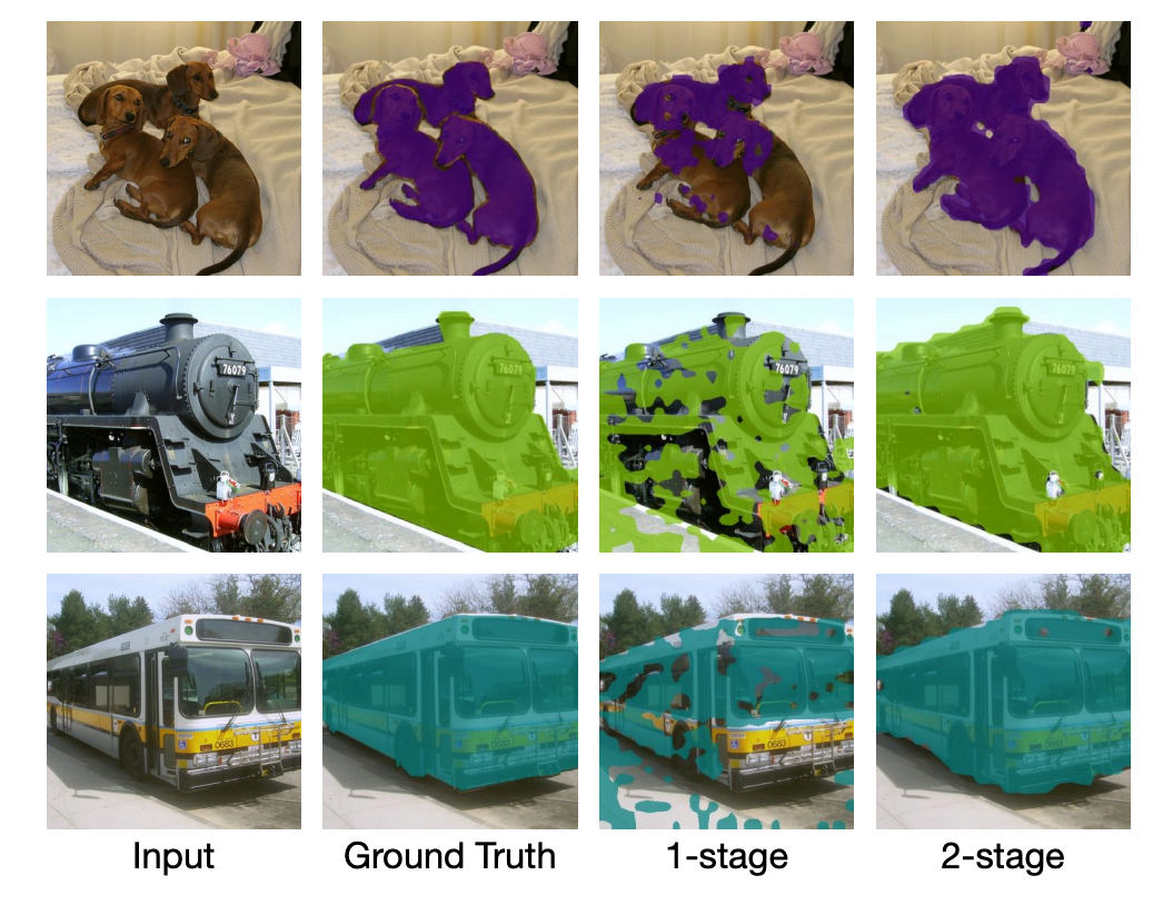 图 6:PASCAL VOC 2012 的定性结果。阶段 1/2 组在分配标签之前对结果进行分组。