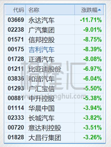 汽车股普跌 广汽(02238.HK)11月产销增速大幅放缓