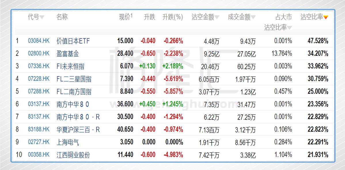 港股今日沽空金额174.22亿港元,大市沽空比率13.719%,较上一个交易日(13.074%)升0.645%。