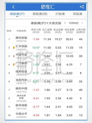 港股通资金继续扫货汇丰控股,今日净买入10.97亿港元,近8个交易日共计净买入69.2亿港元。腾讯近日持续回调,今日遭港股通资金抛售11.1亿港元。