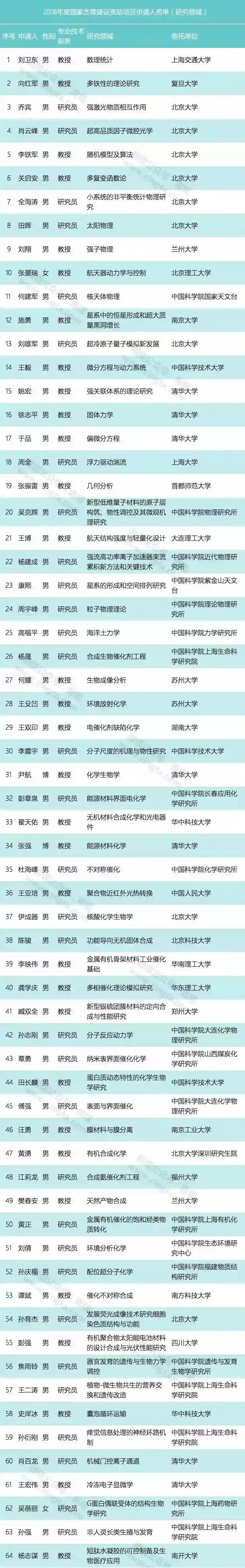 昨天,科技日报正式公布了国家自然科学基金委员会关于公布2018年度国家杰出青年科学基金建议资助项目申请人名单的通告,2018年国家杰青正式出炉。