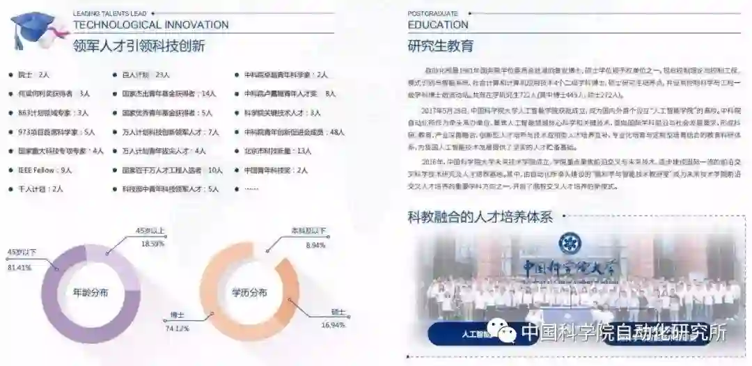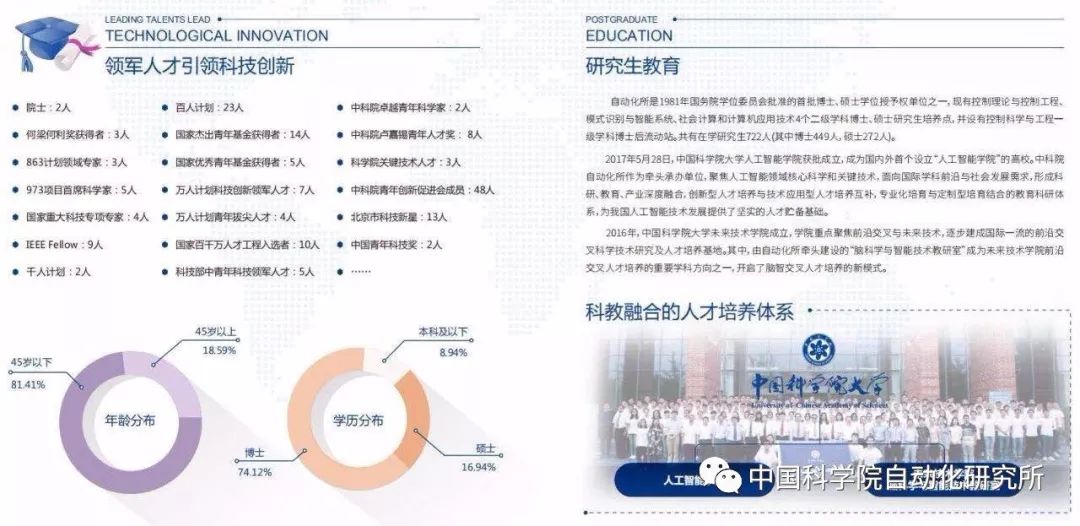 2017年,自动化所与中国科学院大学率先在国际上第一个成立了人工智能学院。2018年,自动化所获批筹建中国科学院人工智能创新研究院。2019年,自动化所牵头建设的中科院香港创新研究院人工智能与机器人创新中心正式获准成立。面向未来,自动化所将依托北京、香港两地,深度参与北京科技创新中心和粤港澳大湾区建设,构建国际一流的科研机构,现面向海外招聘留学回国人才。