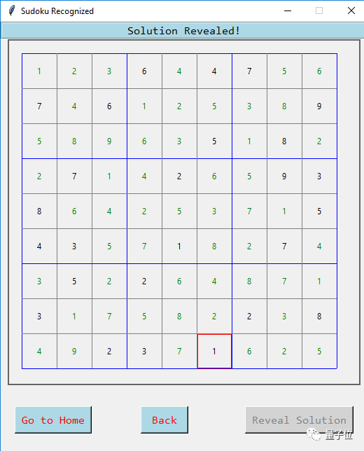 最后将图片切割成81个小块,识别出每个小块里的数字。