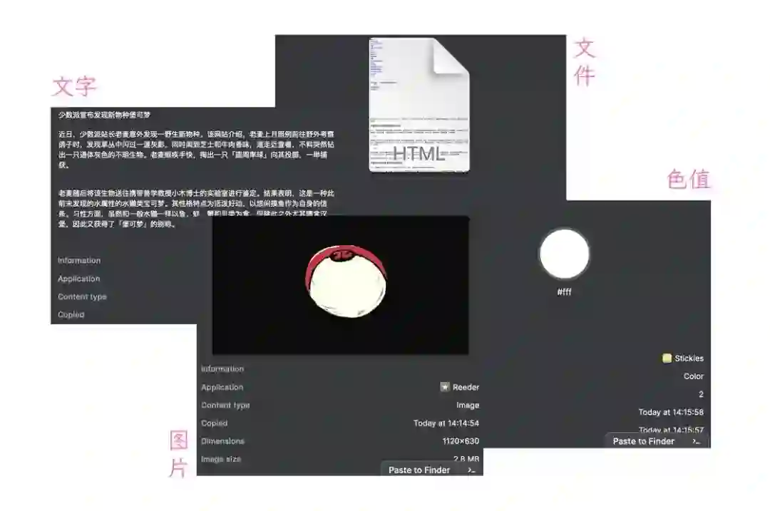 能够预览剪贴板条目内容,并支持文字、图片、文件等,方便统一复制,统一粘贴