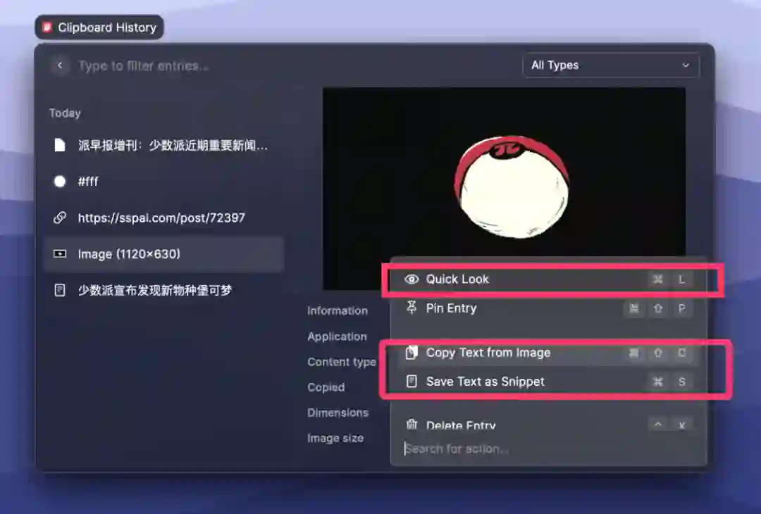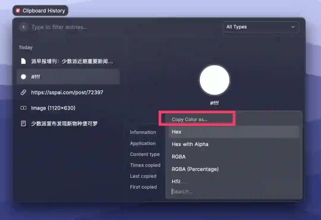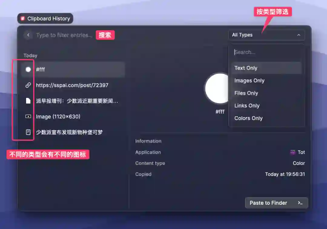 Tip: 复制「文件」后,当文件从该路径移除,剪贴板历史的条目记录也会同步移除。