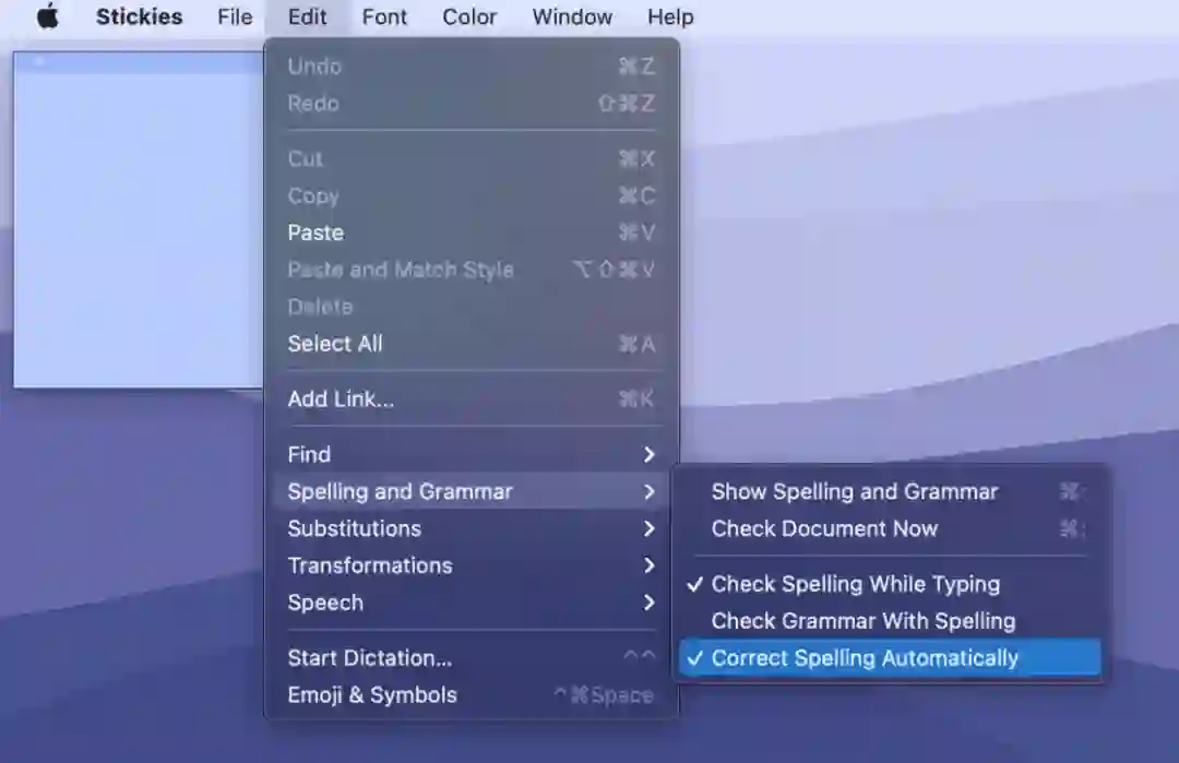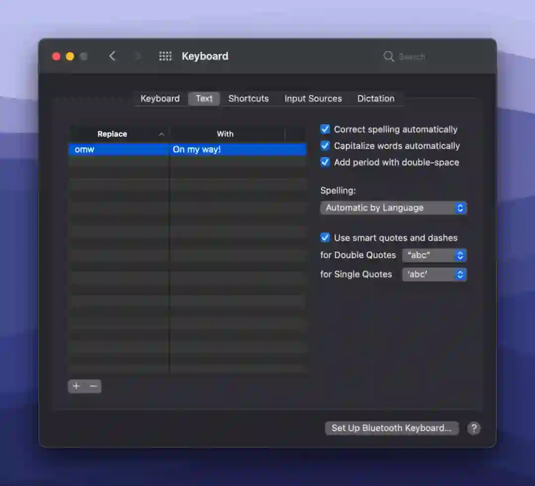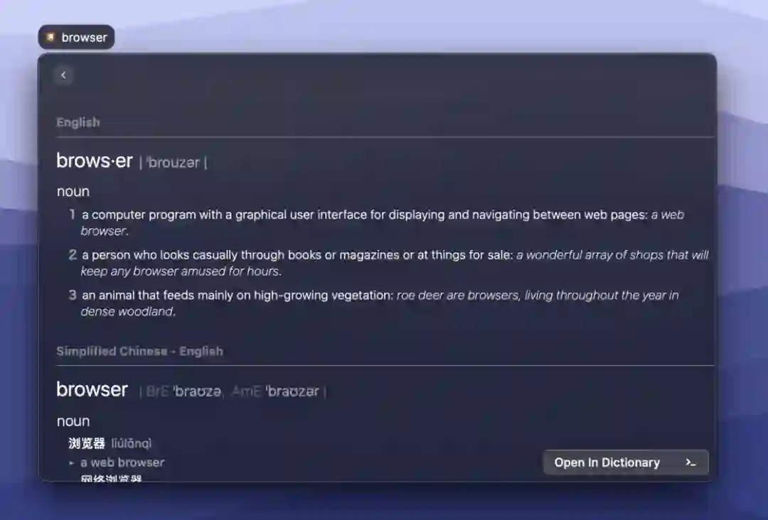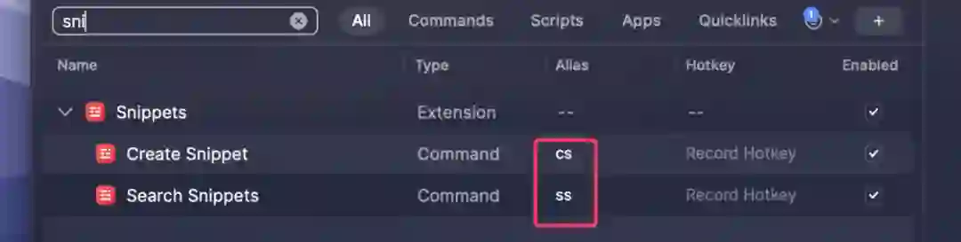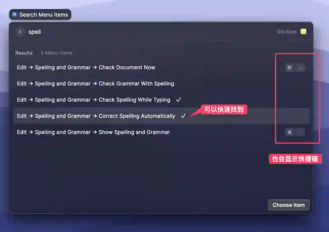 Tips: 如果经常用到状态栏菜单搜索,用别名可能不是最方便,我建议使用快捷键(如右侧的 ⌥ + / ,按起来也很快速)。