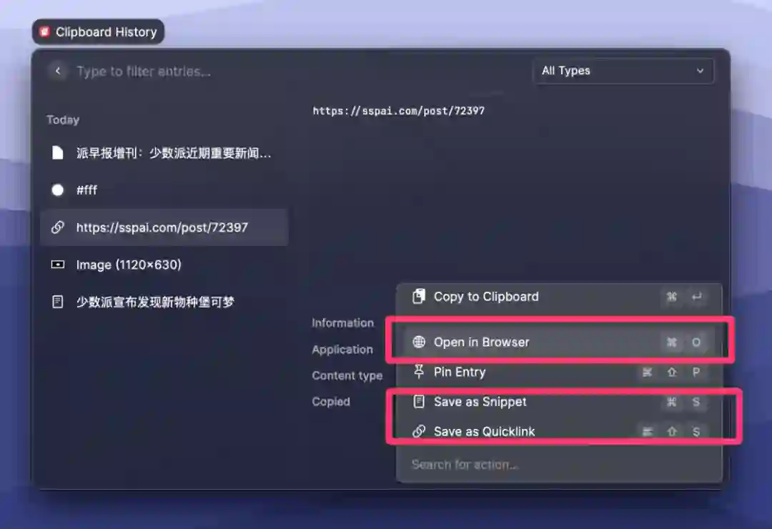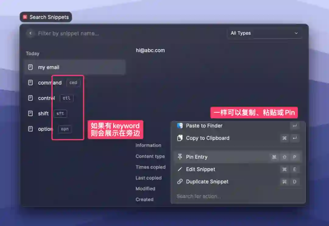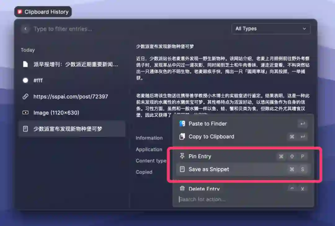 Tip: 上文也提到,我们可以从剪贴板历史条目直接创建一个自定义片段。