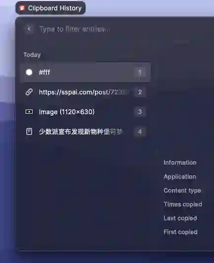在 Mac 记录最近的剪贴板历史就可以,不需要 iCloud 同步,不需要 Universal Clipboard