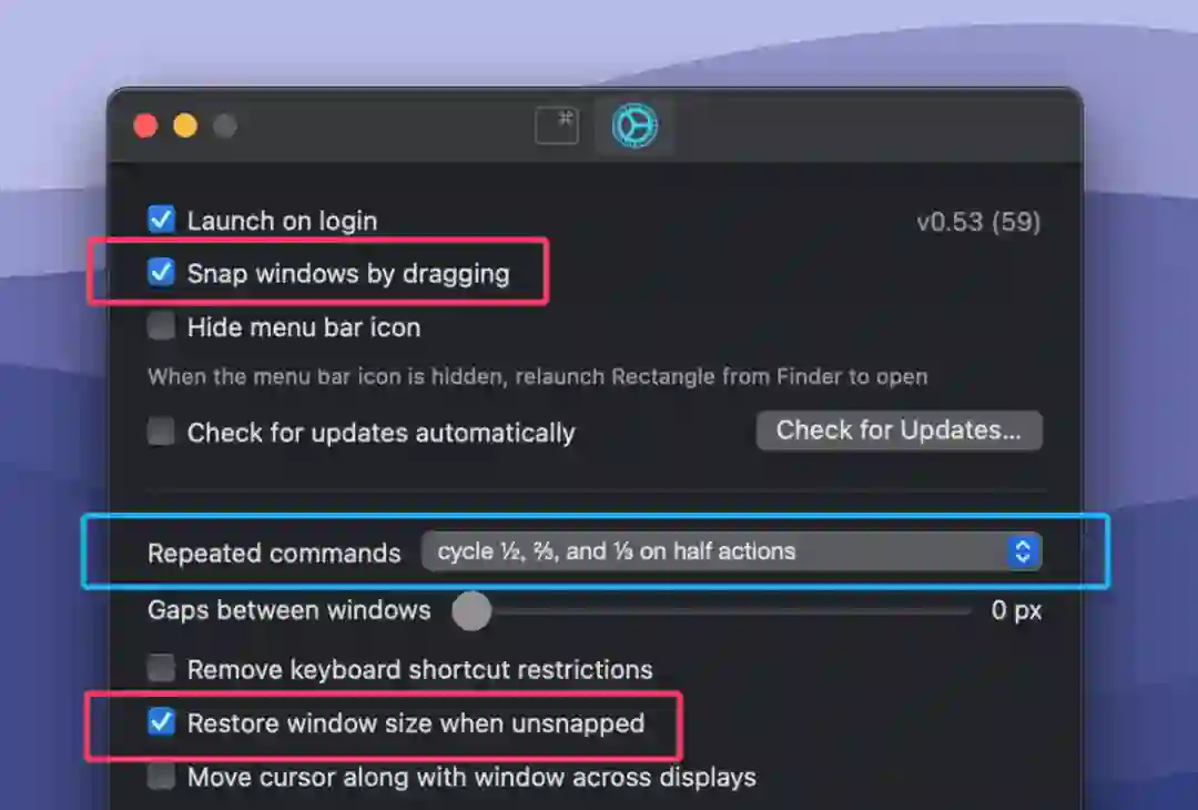 Tip: 上图可以看到,我们也可以设置窗口之间的 gap。