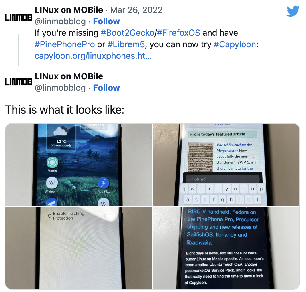 除此之外,还有一个重量级项目Capyloon,它不仅仅是Gerda之类经过大量改装的KaiOS,它的目标是为现代Linux手机(比如PinePhone Pro、Purism Librem 5和Pixel 3A等)提供完整的开源Firefox OS。