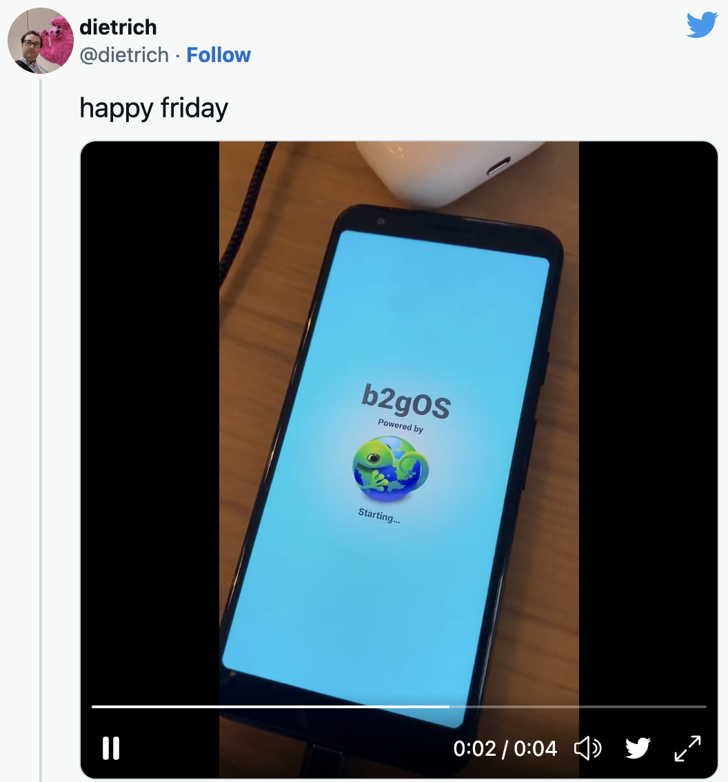 首个采用B2G/Firefox OS的商业应用是KaiOS,出现在2018年左右,这是一款广受欢迎的Firefox OS商业版,有望成为廉价功能手机的现代操作系统。尽管KaiOS最终还是以失败告终,但很快GerdaOS就建立了自己的版本,这是一个自定义ROM,发展目标是将Firefox OS的开放性带回KaiOS设备(比如新款的诺基亚设备),并消除侵入性的用户跟踪器。