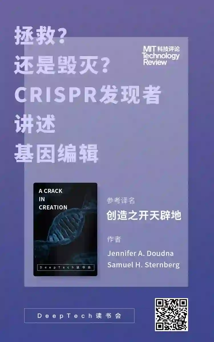 #首例免疫艾滋病基因编辑婴儿#事件引起大家广泛关注,为了帮助大家更好的理解这项技术,DeepTech读书会提前上架这本CRISPR发现者杜德娜教授的《 A Crack in Creation》。在这本书中,她详细讲述了CRISPR的前世今生,以及可能引发的道德伦理问题。