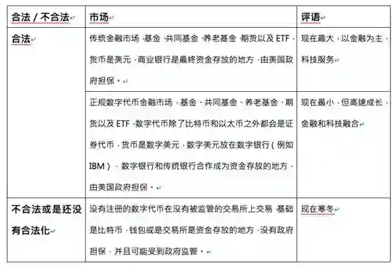而美国政府从 2018 年 2 月以来所做的一系列监管的措施,更加促进这些代币进入寒冬“1,2,3,4”。美国证管会(SEC)承认比特币和以太坊是金融商品,但没有承认其他代币是商品,而应该是证券代币,属于 SEC 管理,因此其他数字代币的前途可能有问题,因为大部分都没有在 SEC 注册成为证券代币。正如笔者在 2018 年 3 月的文章中所写 [5],如果那些代币 SEC 不会认定是合法的商品,也不是货币,更不是证券,那么美国政府可以直接请它们在美国下市。它们可以在美国以外的地方进行交易或其他行为,如果继续留在美国,美国政府将会监管那些发行违法商品或是代币的公司,并且可能监管持币人的钱包。所以现在数字代币的市场已经开始绝望,基金也开始转移投资方向,不再投“传统”数字代币。