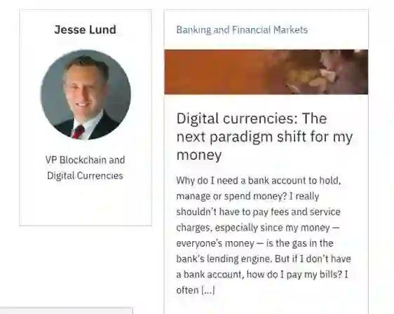 图|IBM 公司数字美元的领导 Jesse Lund 来自银行界(来源:IBM)
