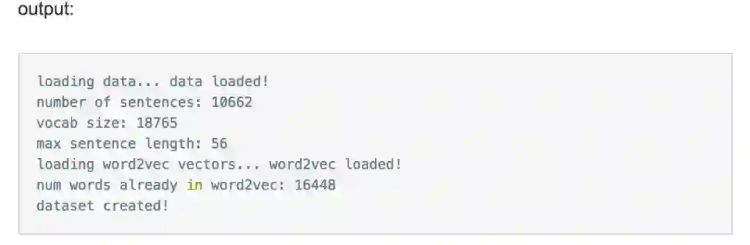输入的数据来自rt-polarity.neg和rt-polarity.pos,原始数据是很多英文句子,类标从文件名获取。以及google的word2vec。