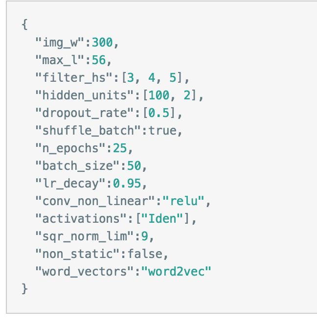 这篇博客记录了这个CNN Sentence Classification的基础论文和代码实现,并没有关注调参,Yoon Kim的github提到了一篇关于这种模型调参的paper,