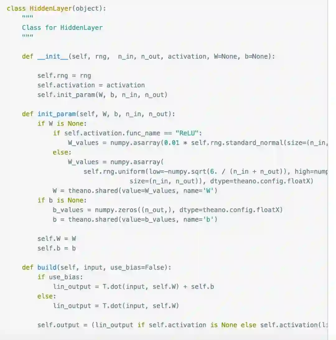 原来的代码用一个类定义一层,这本身没有问题,但所有的细节都在init方法中实现,让该方法显得很臃肿,我们可以根据职责的不同,分开两个方法:init_param()和build()。也就是构建某一层神经网络最重要的两部:初始化参数和根据输入获取输出。