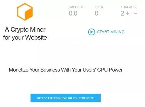 然而最初,Coinhive 的开发者声称的作用,却是为网站主创收。网页中植入 Coinhive 代码,访客打开网页后,每秒可以进行 20 或更多次哈希计算。越多访客访问网页,挖到的 XMR 越多,为网站主带来更多的收入,取代在线广告存在的地位。