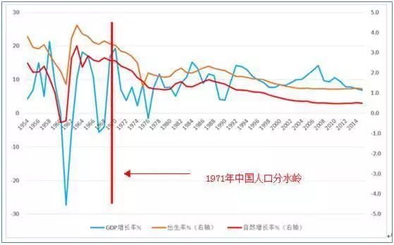 从上图可以清晰看出,开始大力推行计划生育的1971年是中国人口变化的一个明确分水岭。以1971年为分隔线,中国人口增长分为截然不同的两个阶段。