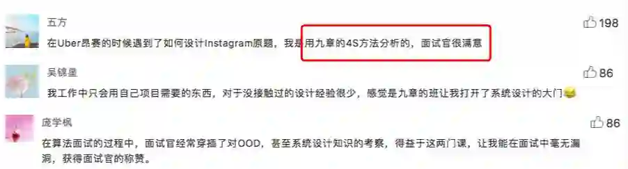 在系统设计面试题中,4S方法的有效性已经被九章的学员证实,由此得到了面试官青睐。下一个得到4S方法加持成功上岸的人,会是你吗?