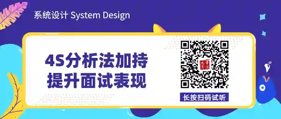 系统设计的面试题往往比较简练,面试官们只会抛出一个最终需求,这就要求面试者主动并且有针对性地跟他们进行交流。这一点九章的系统设计课会专门分析各大厂的经典系统设计题,并给出应对建议,有需要的同学可以先听一下免费试听课感受一下~