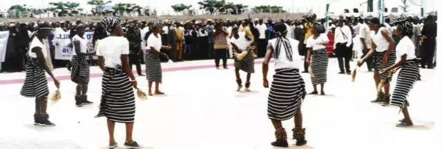 ▲ 尼日利亚的蒂夫族人穿着传统的时尚黑白条纹服饰在玩耍