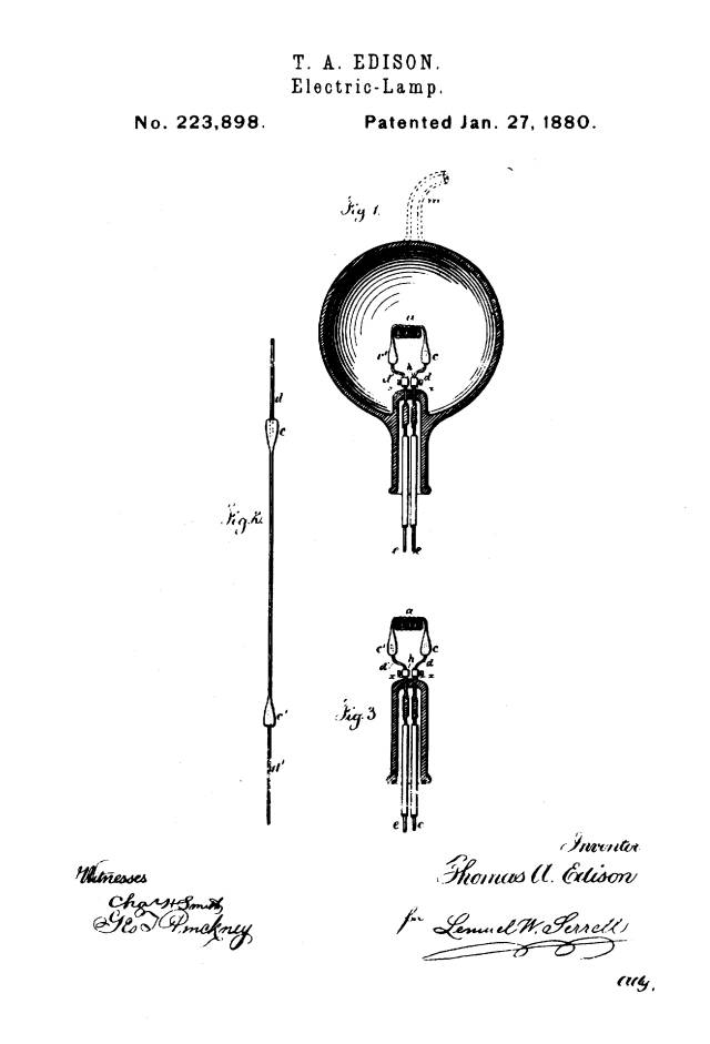 ▲ 爱迪生为电灯泡申请的专利(1880年)