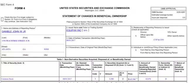 眼尖的美国媒体立刻去翻 SEC 的文件,发现:Equifax 的首席财务官、美国信息解决方案总裁和 员工方案总裁共三名高管,在公司股价高位卖出了总价值接近 180 万美元的 Equifax 股票……