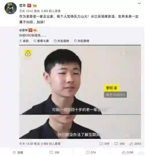 作为老老老一辈企业家的雷军都对该00后CEO表示敬佩之情,看的小七我真的是有些蜜汁尴尬。