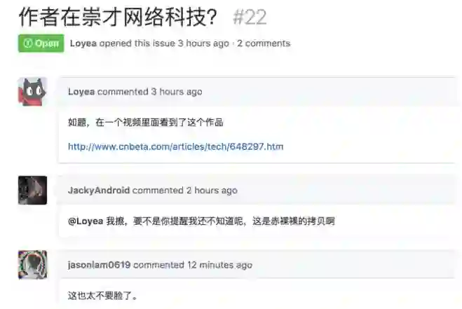 事件远不止于此,今天有网友还爆料出这位00后公然复制、抄袭他的开源作品,其中有网友戏谑称,“雷军听到这位00后抄袭的消息后,恐怕会觉得脸很疼吧。”