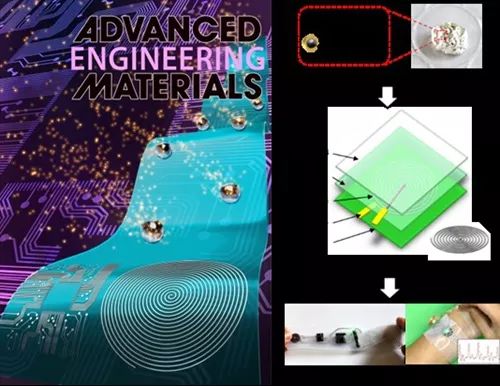 图5. 期刊封面故事及其反映的用于可穿戴及无线健康监测的液态金属柔性电子