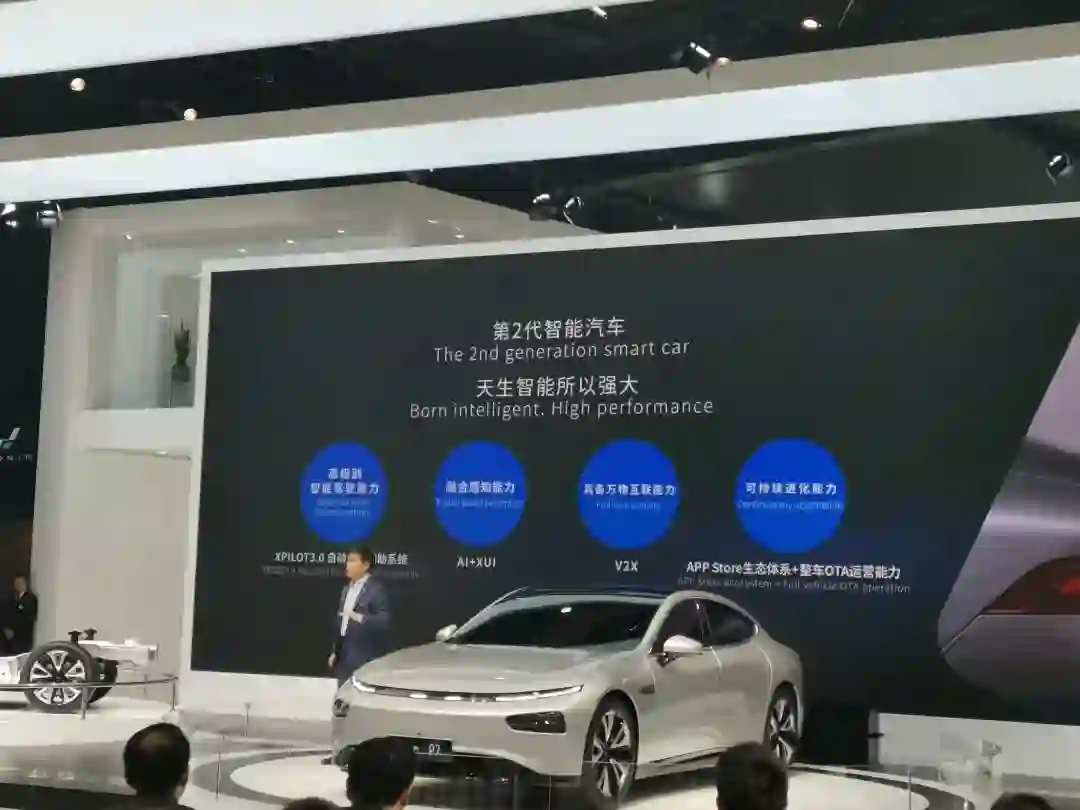 在4.1馆的一层,小鹏汽车和车和家的展台紧挨在一起,位于展馆的中间位置,前来观看小鹏G3和理想one的人挤来挤去。相比之下,旁边有更多车型展示的传统车企却稍显落寞,没有那么多手机、相机举着拍照。