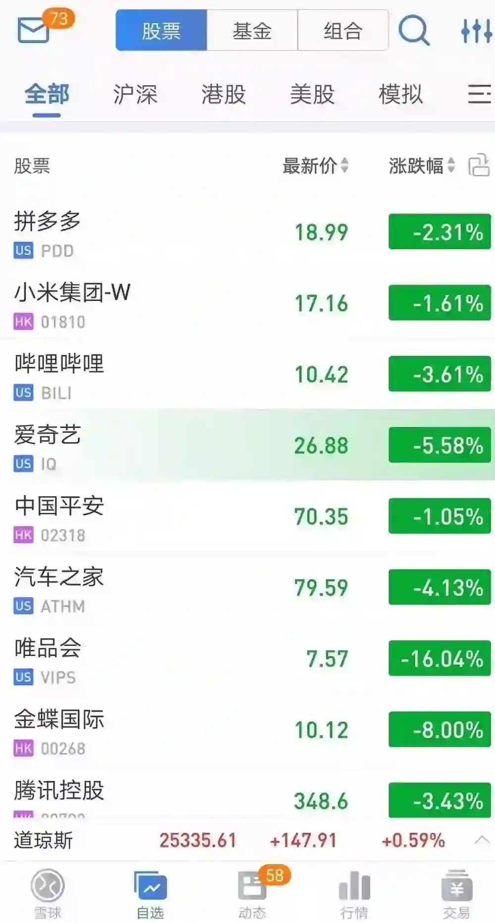 网易208美元,跌!京东33.8美元,跌!小米16.5港币,跌!”